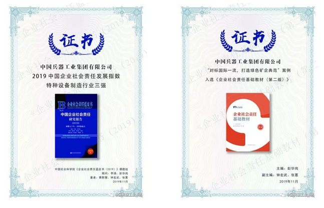 在《企業(yè)社會(huì)責(zé)任藍(lán)皮書(2019)》中,集團(tuán)公司社會(huì)責(zé)任發(fā)展指數(shù)繼續(xù)領(lǐng)跑軍工行業(yè),位列特種設(shè)備制造首位。集團(tuán)公司緬甸蒙育瓦銅礦項(xiàng)目《對(duì)標(biāo)國(guó)際一流,打造綠色礦企典范》以及西安兵器基地《探索和實(shí)踐“軍工+地方”合作共建,國(guó)家一流科技產(chǎn)業(yè)園區(qū)發(fā)展模式》案例入選《企業(yè)社會(huì)責(zé)任基礎(chǔ)教材案例集》,展示了集團(tuán)公司在環(huán)境責(zé)任和產(chǎn)業(yè)帶動(dòng)等方面的履責(zé)成效。(社會(huì)責(zé)任部