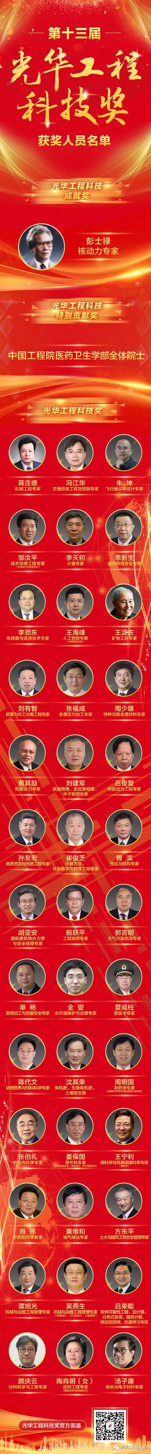 11月8日,第十三屆光華工程科技獎(jiǎng)揭曉儀式在北京隆重舉行。中國兵器工業(yè)集團(tuán)有限公司科技委副主任委員、戰(zhàn)術(shù)導(dǎo)彈工程專家鄒汝平獲第十三屆光華工程科技獎(jiǎng)(獲獎(jiǎng)人員全名單及鄒汝平事跡附后)。 光華工程科技獎(jiǎng)由中國工程院主管,每兩年頒發(fā)一次,目前已是第十三屆,被譽(yù)為“中國工程界最高獎(jiǎng)項(xiàng)”,極大地激勵(lì)了我國工程師、科學(xué)家從事工程科技研究、發(fā)展、應(yīng)用的積極性和創(chuàng)造性。根據(jù)光華工程科技獎(jiǎng)候選人提名要求,候選人需在重大工程設(shè)計(jì)、研制、建造、生產(chǎn)、運(yùn)行、管理等方面解決關(guān)鍵科學(xué)技術(shù)問題或在工程科學(xué)技術(shù)及工程管理領(lǐng)域有重要發(fā)現(xiàn)、發(fā)明,并有顯著應(yīng)用成效,或者是應(yīng)用本人研究成果、發(fā)明創(chuàng)造,發(fā)展高新技術(shù)及相關(guān)產(chǎn)業(yè),成效特別顯著者才可提名。今年,全國范圍內(nèi)共產(chǎn)生了296名有效候選人。 此次揭曉儀式正式公布了從296名候選人中評(píng)選出的第十三屆光華工程科技成就獎(jiǎng)、光華工程科技特別貢獻(xiàn)獎(jiǎng)以及光華工程科技獎(jiǎng)的獲得者,最終僅有40位專家和1個(gè)團(tuán)體獲獎(jiǎng)。本屆光華工程科技獎(jiǎng)的獲獎(jiǎng)科學(xué)家們,緊密圍繞國家重大戰(zhàn)略需求,瞄準(zhǔn)經(jīng)濟(jì)建設(shè)和事關(guān)國家安全的重大工程科技問題,緊貼新時(shí)代社會(huì)民生現(xiàn)實(shí)需求和軍民融合需求,加快自主創(chuàng)新成果轉(zhuǎn)化應(yīng)用,為創(chuàng)新驅(qū)動(dòng)發(fā)展,建設(shè)科技強(qiáng)國,以及實(shí)現(xiàn)“兩個(gè)一百年”奮斗目標(biāo)和中國夢(mèng)做出了重要貢獻(xiàn)。 獲獎(jiǎng)人員全名單 來源/光華工程科技獎(jiǎng) |