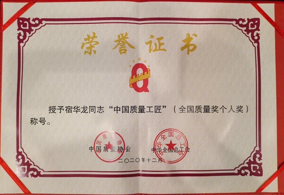 兵器工業(yè)集團宿華龍榮獲第十九屆全國質(zhì)量獎“中國質(zhì)量工匠”稱號 |