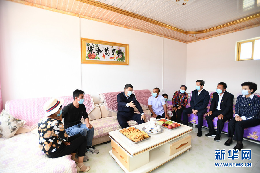 6月8日至10日,中共中央總書記、國家主席、中央軍委主席習近平在寧夏考察。這是6月8日下午,習近平在吳忠市紅寺堡區(qū)紅寺堡鎮(zhèn)弘德村看望移民搬遷群眾,向村民們揮手致意。 新華社記者 謝環(huán)馳 攝 新華社銀川6月10日電 中共中央總書記、國家主席、中央軍委主席習近平近日在寧夏考察時強調(diào),要全面落實黨中央決策部署,堅持穩(wěn)中求進工作總基調(diào),堅持新發(fā)展理念,落實全國“兩會”工作部署,堅決打好三大攻堅戰(zhàn),扎實做好“六穩(wěn)”工作,全面落實“六保”任務,努力克服新冠肺炎疫情帶來的不利影響,優(yōu)先穩(wěn)就業(yè)保民生,決勝全面建成小康社會,決戰(zhàn)脫貧攻堅,繼續(xù)建設經(jīng)濟繁榮、民族團結(jié)、環(huán)境優(yōu)美、人民富裕的美麗新寧夏。 夏日炎炎,塞上江南天高云淡,草木蔥蘢。6月8日至10日,習近平在寧夏回族自治區(qū)黨委書記陳潤兒、自治區(qū)政府主席咸輝陪同下,先后來到吳忠、銀川等地,深入農(nóng)村、社區(qū)、防洪工程、農(nóng)業(yè)產(chǎn)業(yè)園區(qū)等,就統(tǒng)籌推進常態(tài)化疫情防控和經(jīng)濟社會發(fā)展工作、鞏固脫貧攻堅成果、加強生態(tài)環(huán)境保護、推動民族團結(jié)進步進行調(diào)研。 6月8日至10日,中共中央總書記、國家主席、中央軍委主席習近平在寧夏考察。這是6月8日下午,習近平在吳忠市紅寺堡區(qū)紅寺堡鎮(zhèn)弘德村扶貧車間,同正在加工制作紙箱的村民交流。 新華社記者 鞠鵬 攝 吳忠市紅寺堡區(qū)紅寺堡鎮(zhèn)弘德村是生態(tài)移民村,有建檔立卡貧困戶1036戶4497人,目前還有20戶50人未脫貧。8日下午,習近平首先來到弘德村考察脫貧攻堅工作。在村扶貧車間院內(nèi),他聽取了寧夏以及弘德村脫貧攻堅情況介紹。走進扶貧車間,習近平同正在加工制作紙箱的村民們親切交流。鄉(xiāng)親們告訴總書記,村里引入企業(yè)從事紙箱包裝業(yè)務,解決了一百多人就業(yè)問題。習近平表示肯定。他指出,興辦扶貧車間目的是扶貧,要堅持扶貧性質(zhì),向困難群眾傾斜,多招收困難群眾就業(yè)。鄉(xiāng)親們在家門口就業(yè),雖然收入不比進城務工高,但省去了住宿、伙食、交通等費用,還能照顧家庭,一舉多得。企業(yè)參與興辦扶貧車間,體現(xiàn)了先富帶后富,很有意義。 6月8日至10日,中共中央總書記、國家主席、中央軍委主席習近平在寧夏考察。這是6月8日下午,習近平在吳忠市紅寺堡區(qū)紅寺堡鎮(zhèn)弘德村察看回族村民劉克瑞家院落。 新華社記者 謝環(huán)馳 攝 隨后,習近平步行察看村容村貌。在回族村民劉克瑞家,他仔細看院落、客廳、臥室、廚房、牛棚,詳細了解家庭就業(yè)、收入、看病、社保等情況。劉克瑞告訴總書記,家里的耕地流轉(zhuǎn)了,還養(yǎng)了3頭肉牛,兒子兒媳在附近紡織廠打工,2017年全家脫貧,生活越來越好,鄉(xiāng)親們打心底里感到黨的政策好,真切感受到共產(chǎn)黨親。習近平詢問劉克瑞老兩口還有什么困難、對今后的日子有什么打算。習近平強調(diào),鄉(xiāng)親們搬遷后,更好生活還在后頭。希望鄉(xiāng)親們百尺竿頭、更進一步,發(fā)揮自身積極性、主動性、創(chuàng)造性,用自己的雙手創(chuàng)造更加美好的新生活。 6月8日至10日,中共中央總書記、國家主席、中央軍委主席習近平在寧夏考察。這是6月8日下午,習近平在吳忠市紅寺堡區(qū)紅寺堡鎮(zhèn)弘德村,同回族村民劉克瑞一家親切交流。 新華社記者 謝環(huán)馳 攝 離開村子時,村民們紛紛趕到村口,歡送總書記。習近平向大家揮手致意,祝愿鄉(xiāng)親們生活幸福。 6月8日至10日,中共中央總書記、國家主席、中央軍委主席習近平在寧夏考察。這是6月8日下午,習近平在黃河吳忠濱河大道古城灣砌護段,察看黃河生態(tài)治理保護狀況。 新華社記者 鞠鵬 攝 習近平高度重視黃河流域生態(tài)保護和高質(zhì)量發(fā)展。他來到黃河吳忠濱河大道古城灣砌護段,沿岸邊步道,察看黃河生態(tài)治理保護狀況,聽取黃河寧夏段生態(tài)保護治理和水利工程建設情況匯報。習近平指出,黃河是中華民族的母親河,是中華民族和中華文明賴以生存發(fā)展的寶貴資源。自古以來,黃河水滋養(yǎng)著寧夏這片美麗富饒的土地,今天仍在造福寧夏各族人民。寧夏要有大局觀念和責任擔當,更加珍惜黃河,精心呵護黃河,堅持綜合治理、系統(tǒng)治理、源頭治理,明確黃河保護紅線底線,統(tǒng)籌推進堤防建設、河道整治、灘區(qū)治理、生態(tài)修復等重大工程,守好改善生態(tài)環(huán)境生命線。 6月8日至10日,中共中央總書記、國家主席、中央軍委主席習近平在寧夏考察。這是6月8日下午,習近平在吳忠市利通區(qū)金花園社區(qū)黨群活動服務中心,同社區(qū)志愿者代表親切交談。 新華社記者 鞠鵬 攝 6月8日至10日,中共中央總書記、國家主席、中央軍委主席習近平在寧夏考察。這是6月8日下午,習近平在吳忠市利通區(qū)金花園社區(qū)考察民族團結(jié)社區(qū)創(chuàng)建工作情況。 新華社記者 謝環(huán)馳 攝 6月8日至10日,中共中央總書記、國家主席、中央軍委主席習近平在寧夏考察。這是6月8日下午,習近平在吳忠市利通區(qū)金花園社區(qū)廣場,同居民們親切交流。 新華社記者 燕雁 攝 傍晚時分,習近平前往吳忠市利