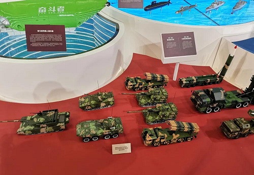 ▲《兵工記憶》《兵工地圖》《祝榆生—誓將一生獻(xiàn)給黨》等圖書 ▲我國自主研制的主戰(zhàn)坦克、輪式步兵戰(zhàn)車和遠(yuǎn)程火箭炮等陸軍主戰(zhàn)裝備 |