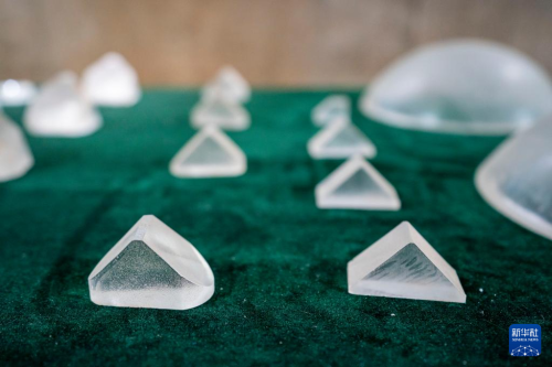 這是5月16日拍攝的中國(guó)光學(xué)歷史博物館內(nèi)展出的玻璃元件。