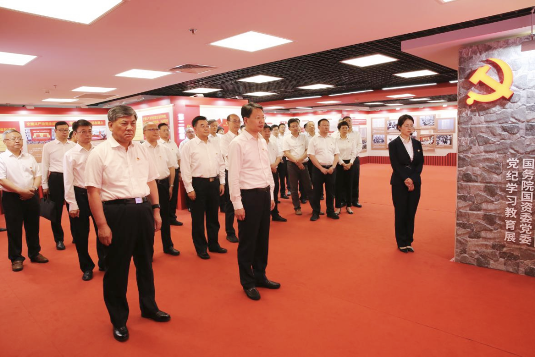 黨組同志認(rèn)真聆聽(tīng)講解,集體參觀(guān)了“政治鑄魂——習(xí)近平總書(shū)記重要論述”“紀(jì)法樹(shù)威——黨規(guī)黨紀(jì)相關(guān)要求”“傳承增信——黨的優(yōu)良傳統(tǒng)”“嚴(yán)管促行——國(guó)務(wù)院國(guó)資委黨委紀(jì)律建設(shè)成效”“警示立戒——反面典型案例”“實(shí)干建功——工作展望”6個(gè)篇章,通過(guò)觀(guān)看圖文、視頻等形式多樣的展品展示,進(jìn)一步學(xué)習(xí)領(lǐng)會(huì)習(xí)近平總書(shū)記關(guān)于國(guó)資央企的重要指示批示精神和黨的紀(jì)律建設(shè)的重要論述,學(xué)習(xí)把握《中國(guó)共產(chǎn)黨紀(jì)律處分條例》新增、修訂內(nèi)容,全面了解國(guó)務(wù)院國(guó)資委黨委強(qiáng)化政治引領(lǐng)、加強(qiáng)政治監(jiān)督、深化紀(jì)律建設(shè)、抓實(shí)巡視工作等方面的做法舉措,集中觀(guān)看近年來(lái)國(guó)資央企發(fā)生的具有代表性的違規(guī)違紀(jì)案例,深刻領(lǐng)悟以習(xí)近平同志為核心的黨中央堅(jiān)持黨要管黨、全面從嚴(yán)治黨取得的歷史性成就,全面感受?chē)?guó)務(wù)院國(guó)資委黨委全面從嚴(yán)治黨取得的重要成果。