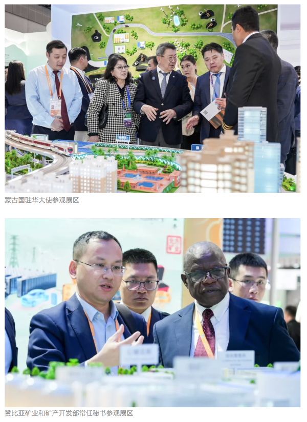 本屆進博會上,蒙古國駐華大使、贊比亞礦業(yè)和礦產(chǎn)開發(fā)部常任秘書、津巴布韋首席司長等多國政要蒞臨集團公司組展展區(qū),了解有關(guān)項目情況。