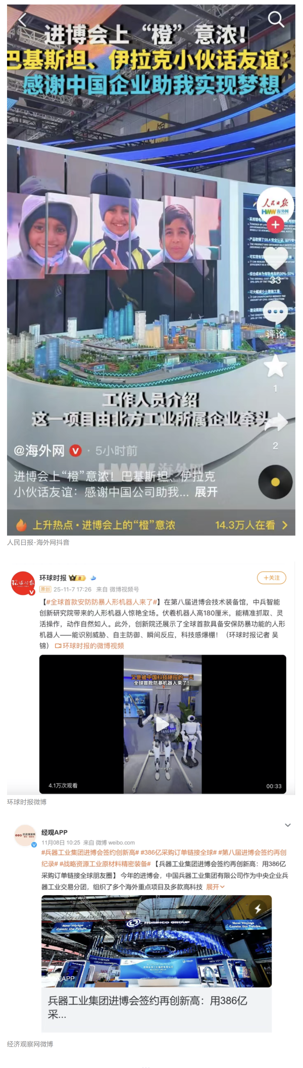 在微博、抖音等新媒體平臺上,集團公司高科技產(chǎn)品演示、5D穹幕電影體驗等短視頻持續(xù)引爆流量,累計播放量超800萬次,點贊量破50萬?!氨鞴I(yè)集團進博會簽約386億”相關(guān)話題登上微博熱搜榜,閱讀量破5000萬次。